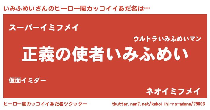 | ヘコむあだ名 | 『いみにー』『いみふめい(笑)』 |