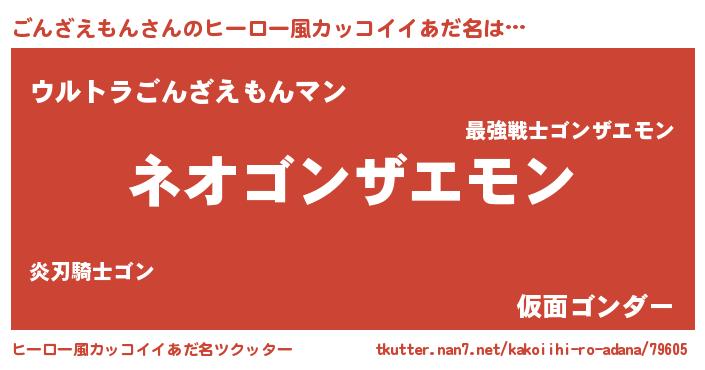 | 男性向けラノベタイトル風あだ名 | 『ごんざえもんという概念が存在しない退屈な世界 』 |