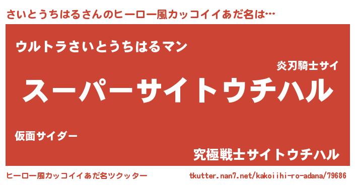 | 男性向けラノベタイトル風あだ名 | 『緋弾のサイトウチハル』 |