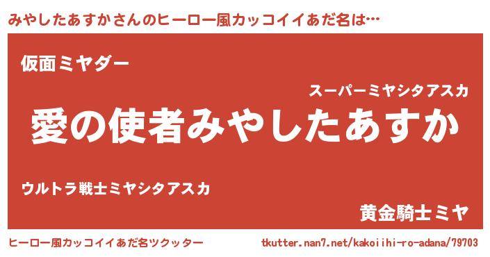 | 女子向けラノベタイトル風あだ名 | 『みやしたあすか恋絵巻』 |