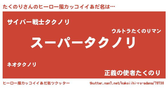 | 男性向けラノベタイトル風あだ名 | 『タクノリスレイヤー』『たくのりの憂鬱』 |