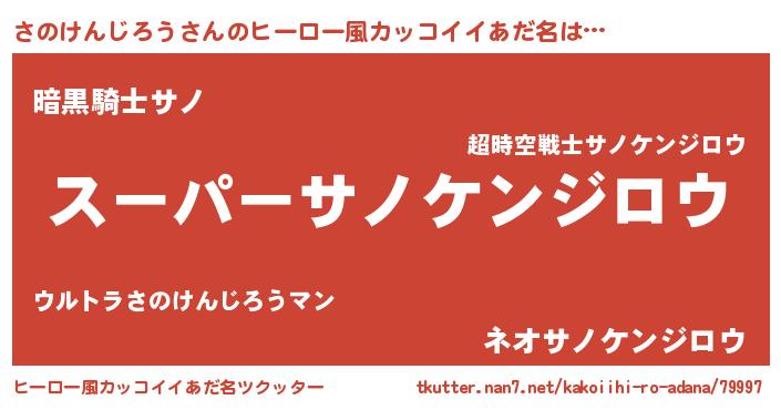 | 男性向けラノベタイトル風あだ名 | 『サノケンジロウアートオンライン』 |