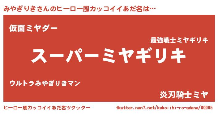 | 胡散臭い通販商品みたいなあだ名 | 『必ず成功するブレスレット…その名も「みやぎりき」』 |