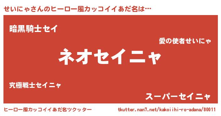 | 男性向けラノベタイトル風あだ名 | 『せいにゃという概念が存在しない退屈な世界 』 |