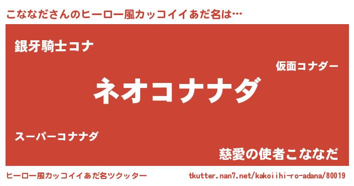 | ポケモン風あだ名 | 『ゼニコナ』『ヒコナナダ』 |