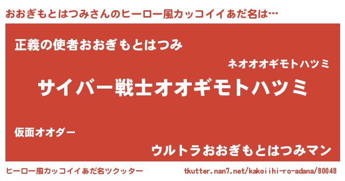 | 意味不明あだ名 | 『自称おおぎもとはつみ』 |