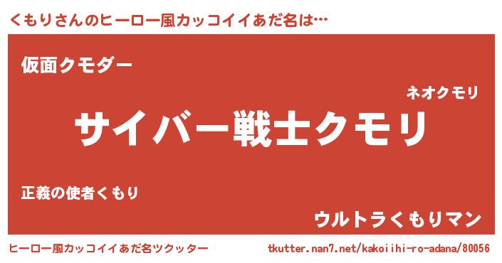 | 男性向けラノベタイトル風あだ名 | 『魔法科高校のくもり』『緋弾のクモリ』 |