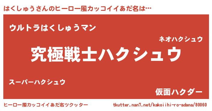 | ファンタジー風あだ名 | 『ゼハクトゥ』『エターナルハクシュウー』 |