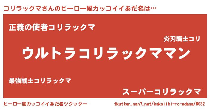 | 男性向けラノベタイトル風あだ名 | 『転生したらコリラックマだった件』 |