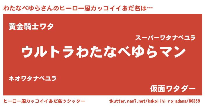 | 男性向けラノベタイトル風あだ名 | 『転生したらわたなべゆらだった件』 |