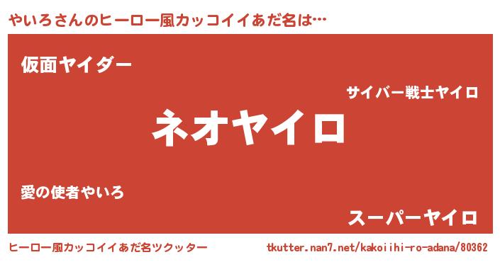 | 男性向けラノベタイトル風あだ名 | 『やいろという概念が存在しない退屈な世界 』 |