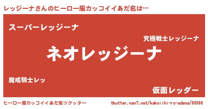 | 意味不明あだ名 | 『永久保存レッジーナ』『自称レッジーナ』 |