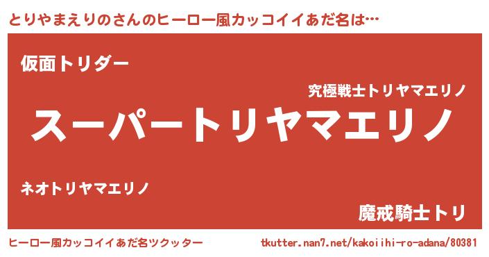 | 恥ずかしいあだ名 | 『プリティーとりやまえりの』『とりちん』 |