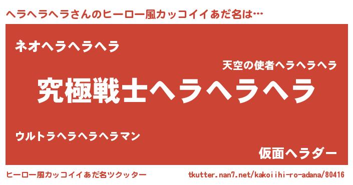 ヘラヘラヘラさんのヒーロー風カッコイイあだ名をツクッター!