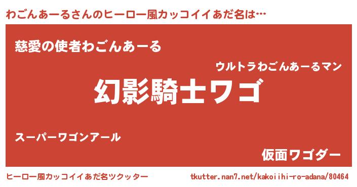 | 男性向けラノベタイトル風あだ名 | 『わごんあーるの嫁は女の子じゃないと思った?』 |