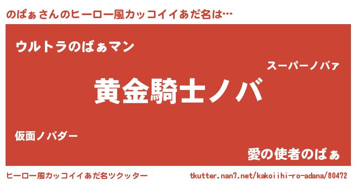 | 胡散臭い通販商品みたいなあだ名 | 『信頼と実績のサプリメント…その名も「のばぁ」』 |
