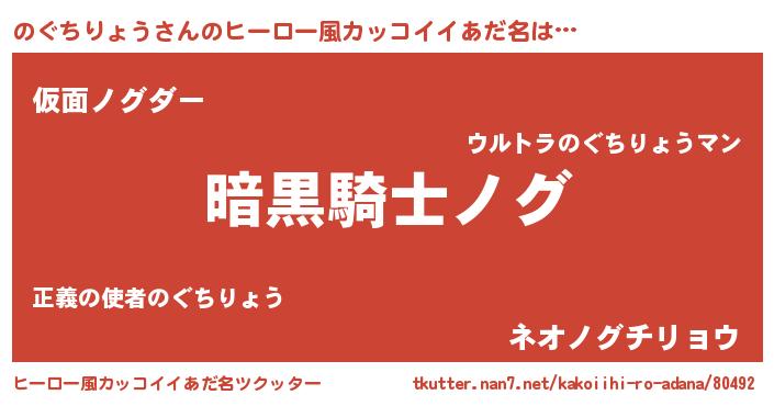 | 意味不明あだ名 | 『とにかく怪しいのぐちりょう』 |