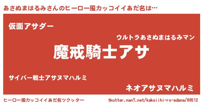 | ヘコむあだ名 | 『あさっ子』『あさぬまはるみ(笑)』 |