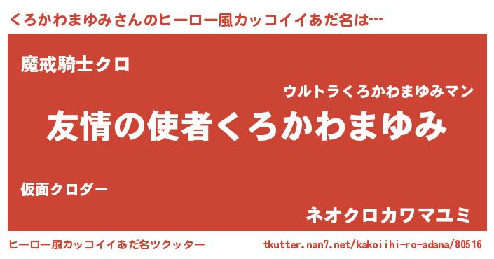 | 伝説のあだ名 | 『人々から恐れられる錬金術士くろかわまゆみ』 |