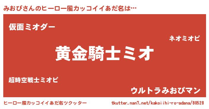 | 胡散臭い通販商品みたいなあだ名 | 『信頼と実績のサプリメント…その名も「みおぴ」』 |