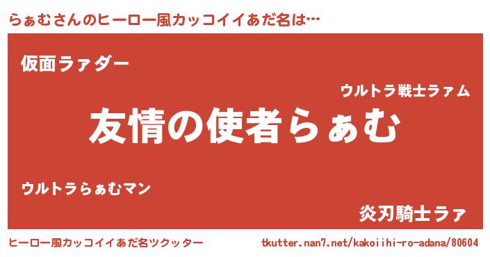 | 胡散臭い通販商品みたいなあだ名 | 『100人中100人が認めたイリジウム磁石…その名も「らぁむ」』 |