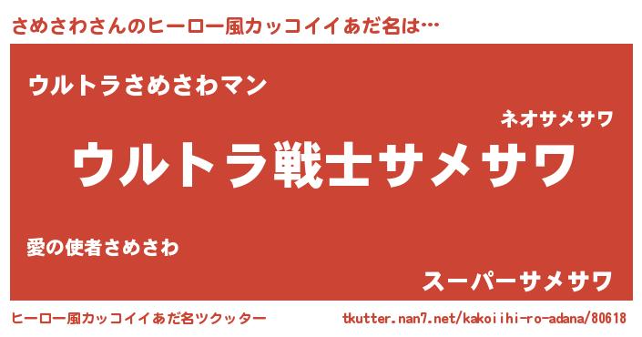 | 男性向けラノベタイトル風あだ名 | 『転生したらさめさわだった件』 |