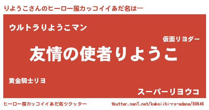 | 女子向けラノベタイトル風あだ名 | 『りようこ恋絵巻』『りようこの婚約者』 |