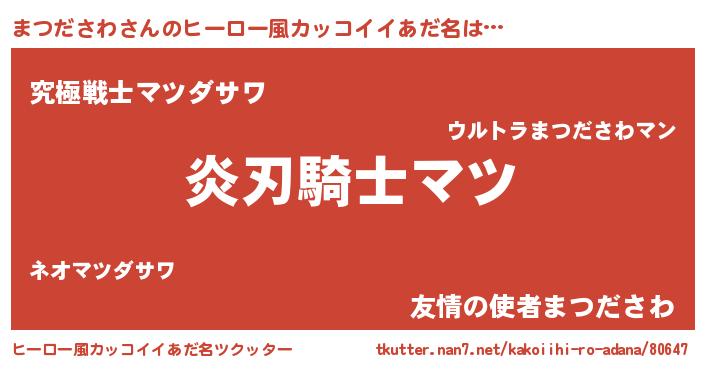 | ポケモン風あだ名 | 『マツキング』『ヒマツダサワ』 |