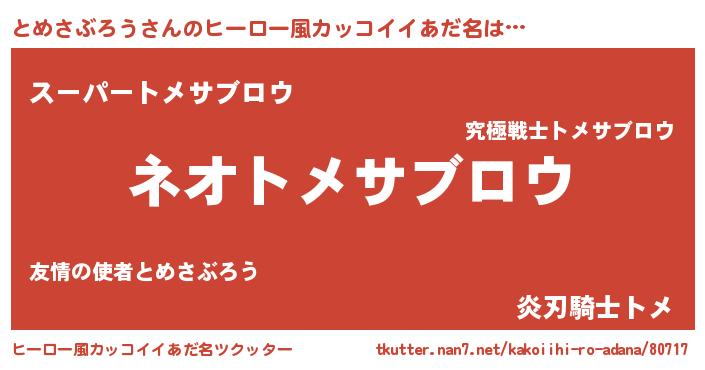 | 伝説のあだ名 | 『古文書に記された勇者とめさぶろう』 |