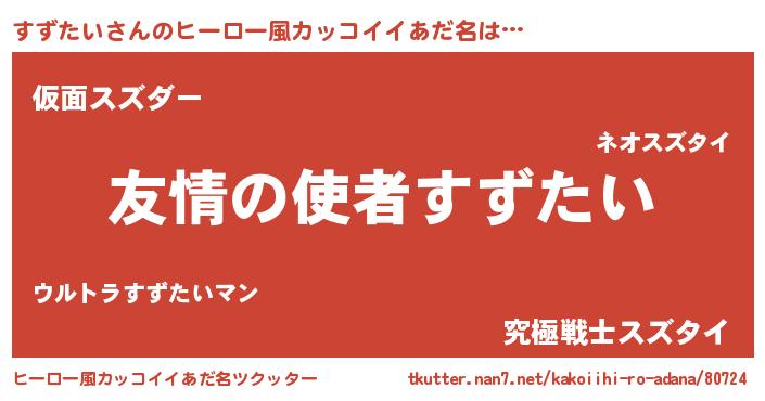 | 男性向けラノベタイトル風あだ名 | 『おまえをオタクにしてやるから、俺をすずたいにしてくれ! 』 |