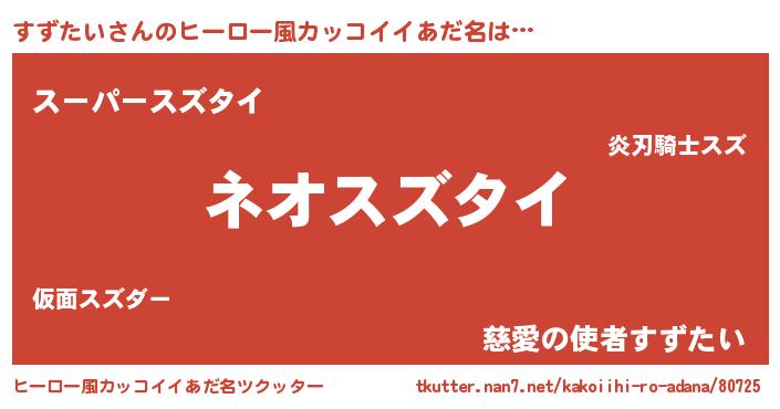 | 男性向けラノベタイトル風あだ名 | 『すずたいという概念が存在しない退屈な世界 』 |
