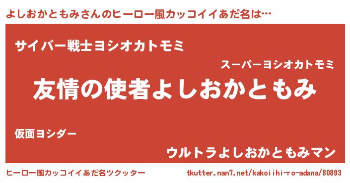 | 男性向けラノベタイトル風あだ名 | 『おまえをオタクにしてやるから、俺をよしおかともみにしてくれ! 』 |