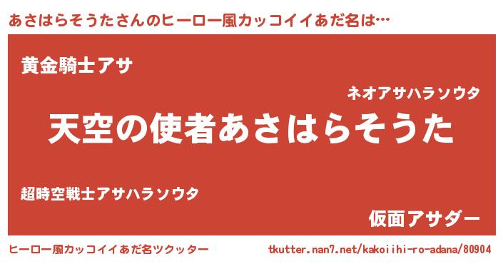 | ヘコむあだ名 | 『あさっ子』『あさはらそうた(爆)』 |