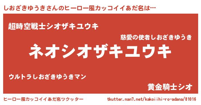 | 意味不明あだ名 | 『永久保存しおざきゆうき』 |