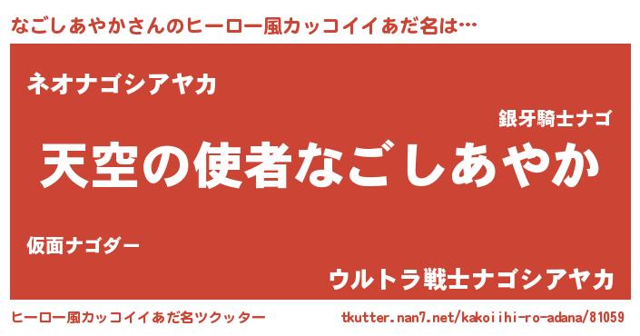 | 男性向けラノベタイトル風あだ名 | 『なごしあやか~年齢イコール彼女いない歴の魔法使い~』 |