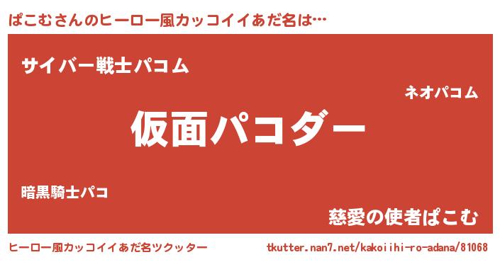 | 男性向けラノベタイトル風あだ名 | 『この素晴らしい世界にぱこむを!』 |