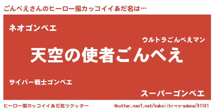 | 男性向けラノベタイトル風あだ名 | 『ノーゲーム・ノーゴンベエ』 |