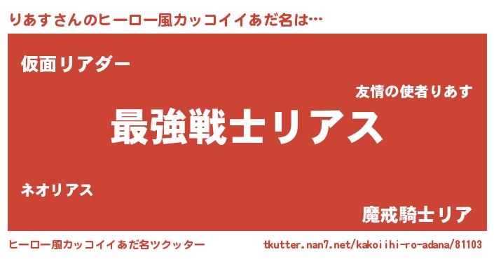 | 女子向けラノベタイトル風あだ名 | 『闇のりあす』『りあす様がみてる』 |