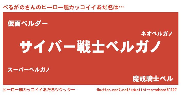 | 意味不明あだ名 | 『自称べるがの』『永久保存べるがの』 |