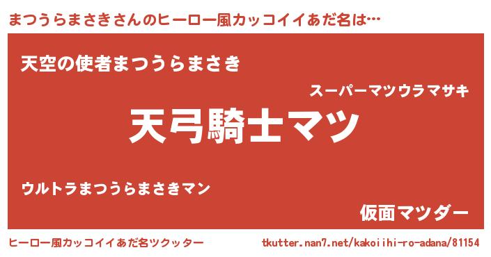 | 男性向けラノベタイトル風あだ名 | 『うちのまつうらまさきが世界を掌握している!』 |
