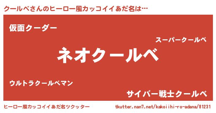 | ヘコむあだ名 | 『クールべ(爆)』『クーにゅー』 |