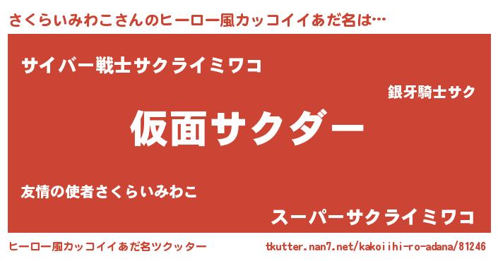 | 男性向けラノベタイトル風あだ名 | 『冴えないさくらいみわこの育てかた』 |