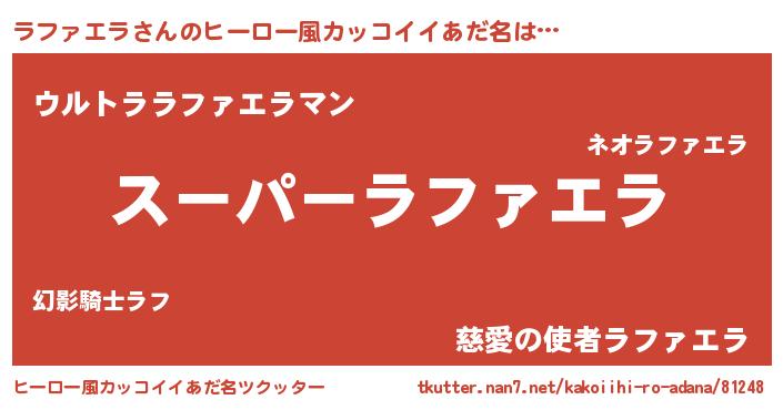 | 胡散臭い通販商品みたいなあだ名 | 『必ず成功するブレスレット…その名も「ラファエラ」』 |