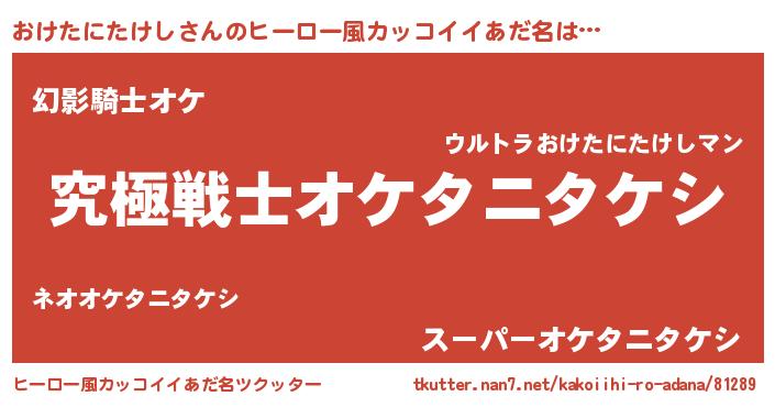| 女子向けラノベタイトル風あだ名 | 『おけたにたけしストレイドッグス』 |