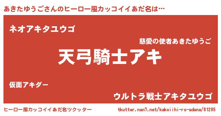 | ポケモン風あだ名 | 『ヒアキタユウゴ』『ゼニアキ』 |