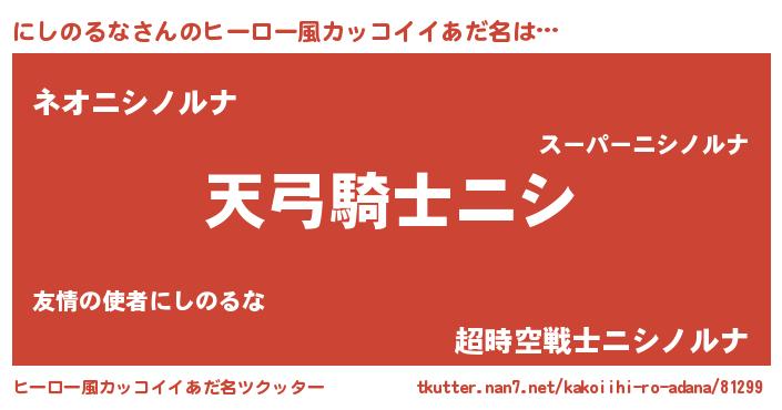 | 男性向けラノベタイトル風あだ名 | 『にしのるなに滅ぼされるだけの簡単なお仕事です』 |