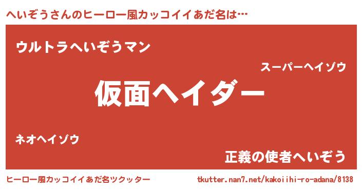 | 意味不明あだ名 | 『住所不定無職へいぞう(59歳)』 |
