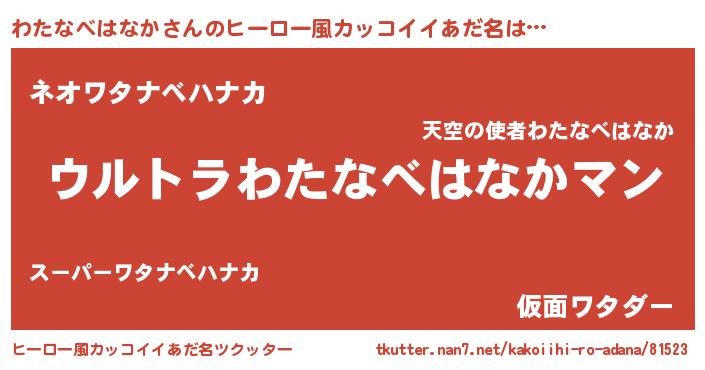 | ファンタジー風あだ名 | 『エターナルワタナベハナカー』 |
