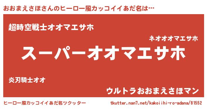 | 男性向けラノベタイトル風あだ名 | 『おおまえさほの憂鬱』 |