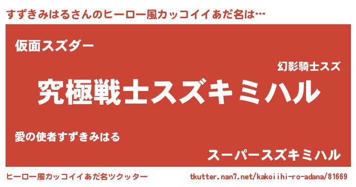 | 男性向けラノベタイトル風あだ名 | 『Re:すずきみはるから始める異世界生活』 |